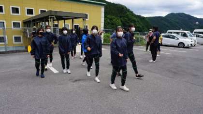 ウェットスーツに着替え終わり、ラフティング体験の会場ヘバスで移動します。