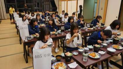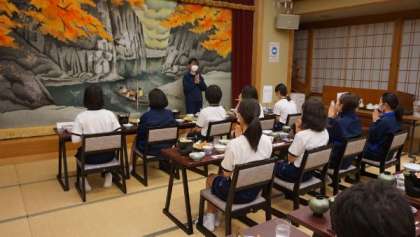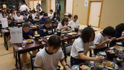 女子生徒は、2階の宴会場(りんどう)で、夕食をいただきました。