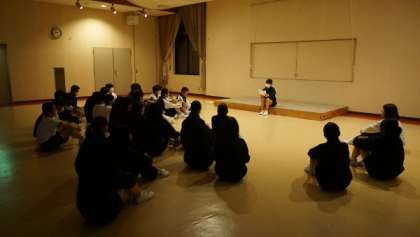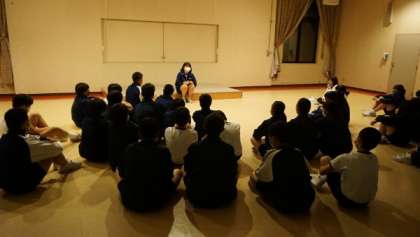2組のクラス・ミーティングを多目的ホールで行いました。