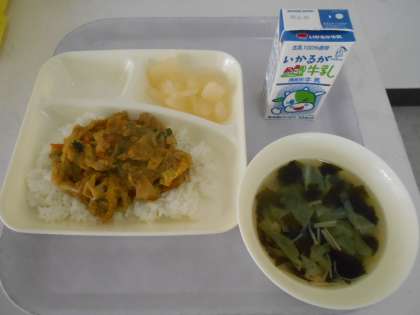 本日の献立は、和風カレー丼、すまし汁、和なし、牛乳です。