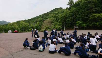 学級写真を撮り終えて、いよいよ班活動のオリエンテーリングが始まります。