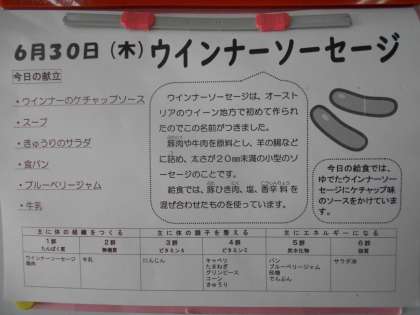本日の献立「ウインナーのケチャップソース」の食材である「ウインナーソーセージ」は、オーストリアのウイーン地方で初めて作られたので、この名前がつきました。豚肉や牛肉を原料として、羊の腸などに詰めて作ります。
