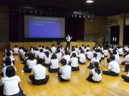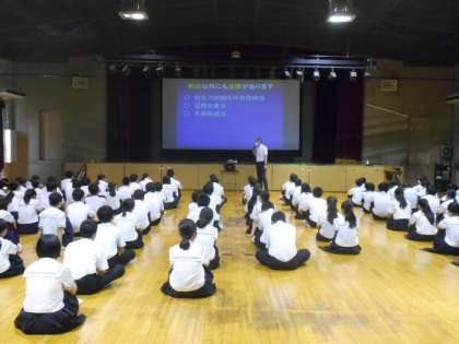2年生は、講堂で講師として住吉警察の少年係の方をお迎えして、非行防止教室を行いました。