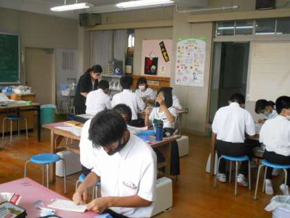 本日、6限目に1年1組で家庭科の森田先生の研究授業が行われました。