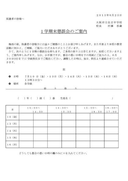 1学期末懇談会のご案内