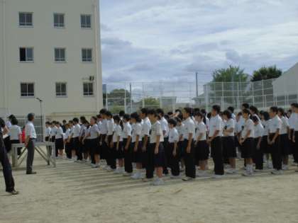 暑い中だらけずに並んで話を聞く状況が作れている。