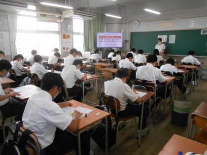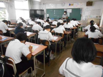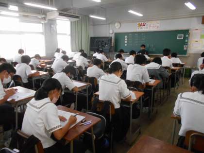 1年生の各学級での中間テスト第2日目の様子です。