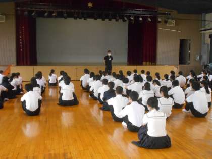 2年生の学年集会を講堂で行いました。田中先生から、「中秋の名月」や「十三夜」に関わるお話がありました。