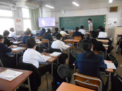 〈写真下〉1年3組(社会)