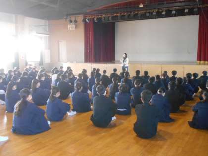 2年生の学年集会を講堂で行いました。森田先生から、暮らしぶりの変化の中で気づいたことをもとにしながら、学校生活での気づきとしてふりかえってみてほしいことについてのお話がありました。