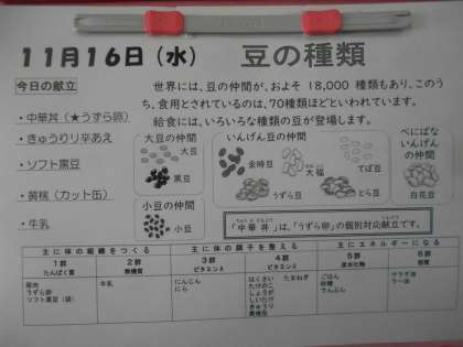 給食では、大豆や小豆、インゲン豆、べにばないんげんなどのいろいろな豆類が登場します。