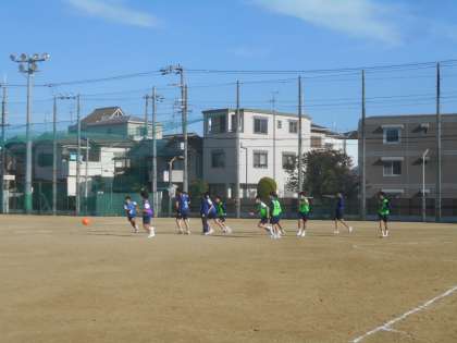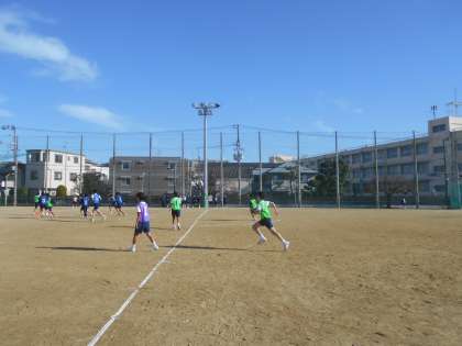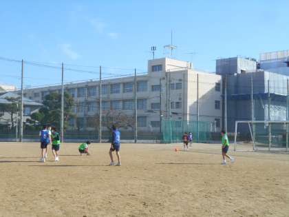 男子は、運動場でサッカーでの試合形式での球技大会です。