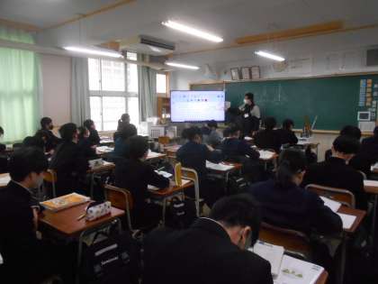 〈写真中〉2年2組(社会)