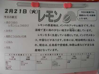 本日の給食【2月21日(火)】