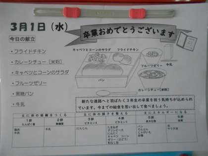 本日の給食【3月1日(水)】
