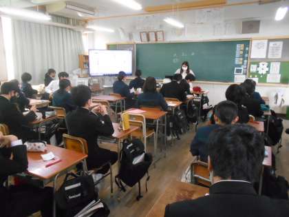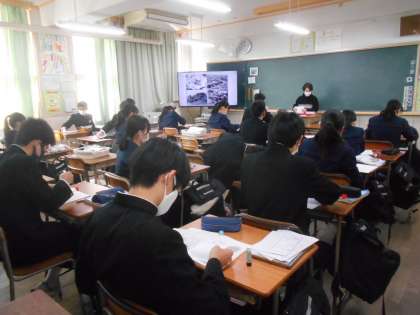〈写真中〉2年2組(社会)