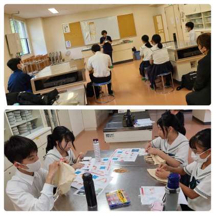 ラフティングの裏メニューは、桜の木を柿渋で染め、ブレスレットを作成する作業の体験をしました。