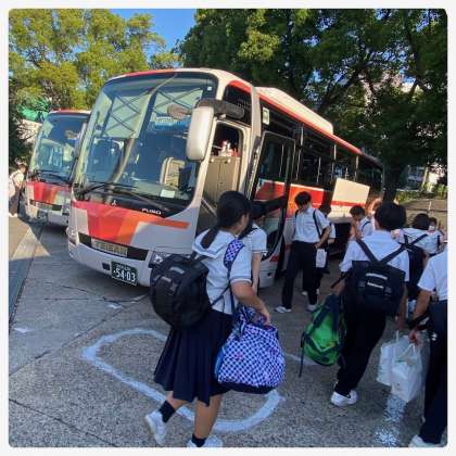 バスは帝塚山グリーンハイツ付近に到着し、学校で解散の予定です。
