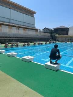 アップで逆立ちをしたり、水中で回転したりした後にクロールを中心に学習しています。
