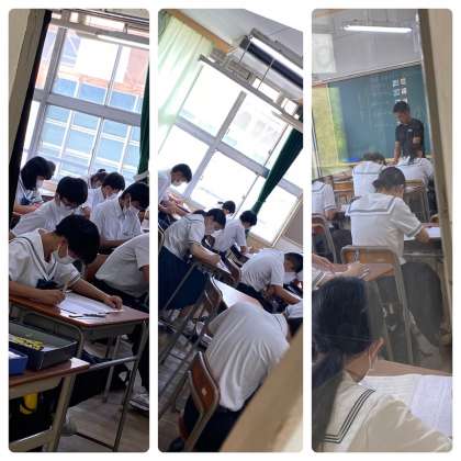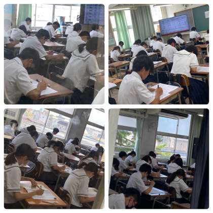 3年生では進路指導の資料として活用する実力テスト、1年生と2年生では夏休みの課題をしっかり学習できているかを確認する課題テストが行われました。