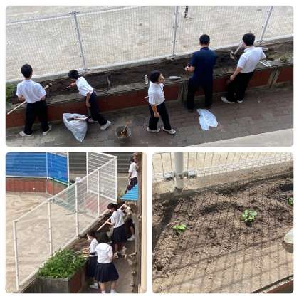 園芸部が先生の指示を聞きながら活動していました。下に降りて直接お礼を言いたいところでしたが、別の仕事があって写真に収めることしかできませんでした。いつもありがとうございます。