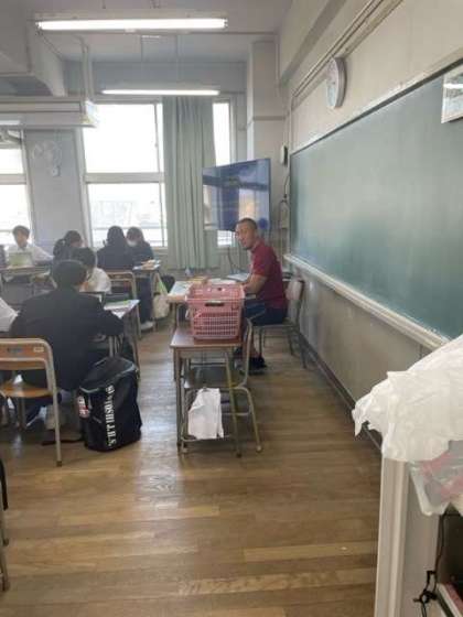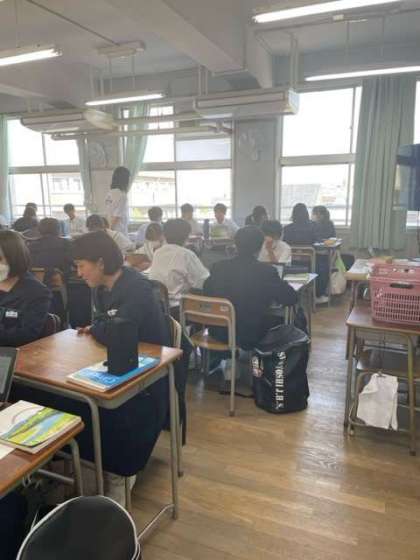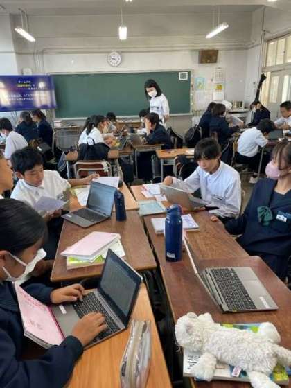 1年生の国語の授業では、グループで古文の口語訳を端末を活用しつつ、自分たちで考えるという活動を行っていました。教員が生徒の学びをコーディネートしながら、自ら学ぶという形ができてきたように感じます。