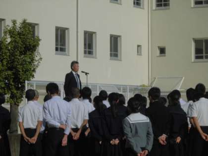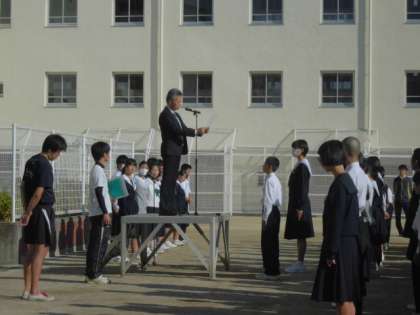 全校であいさつの後は、