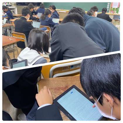 期末テストの返却が終わったのか、学習者用端末を活用してチャレンジテストの過去問題を見ていました。