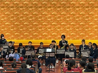 朝早くから吹奏楽部と演劇放送部は住吉小学校の「こどもパーティー」のオープニングセレモニーや司会を行いました。
