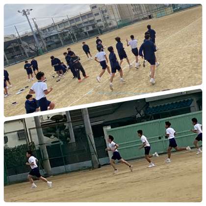 3年生男子は、寒空の下、持久走をしていました。グラウンド一周を制限時間内に走り、その制限時間を少しずつ短くするペース走というものでした。