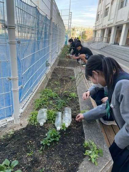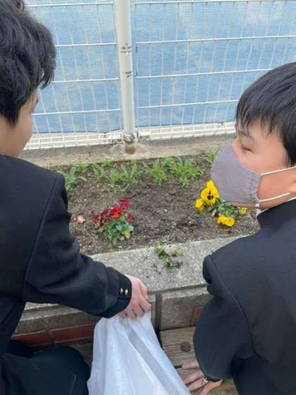タイトルの通り、園芸部が除草作業をしてくれています。