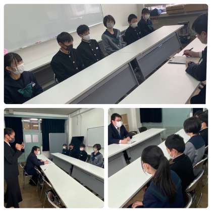 放課後、本校が文部科学省主催のリーディングDXスクール事業にチャレンジしていることもあり、1年生の代議員が大阪市教育委員会事務局の方から学習者用端末を使った学習についてインタビューを受けました。