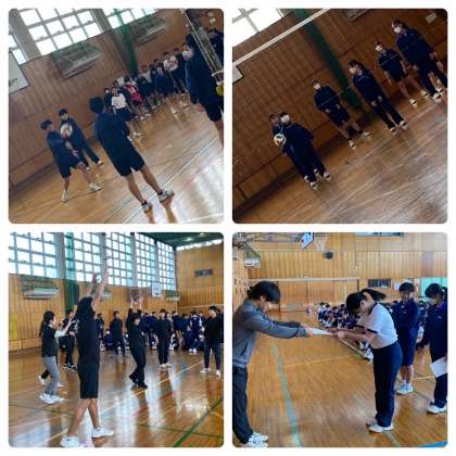 5限目と6限目、2年生は体育館で球技大会を行いました。バレーボールが得意な人も苦手な人も楽しかったと思える取組であってほしいとメッセージを伝えました。
