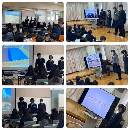 住吉小学校、東粉浜小学校の5年生に中学校を意識した一年間を過ごしてもらうため、生徒会が2校を訪問し、部活動や学校行事の説明をしました。