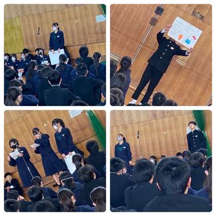 各委員会と生徒会役員で先月の反省や今月の目標を発信してきた生徒会集会。このメンバーでの会も最後になりました。