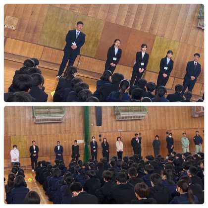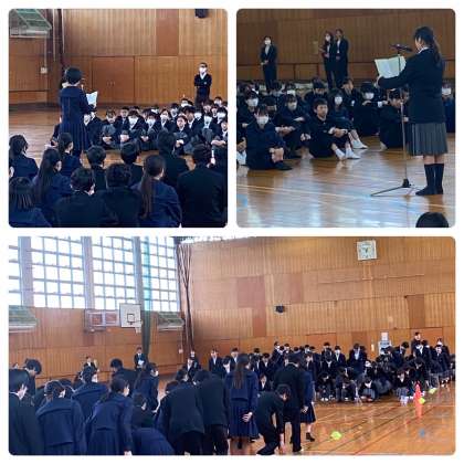 体育館に全校生徒が集まり、住吉中学校の新たな一年が始まりました。