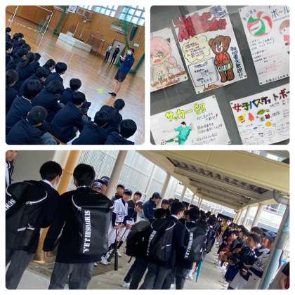午後から、明日からの部活動体験に向けた紹介が各部よりありました。練習の成果が出なかった部もありましたが、精一杯が伝わったと思います。特に帰りの勧誘は新入生に期待を込めた行動だったと思います。