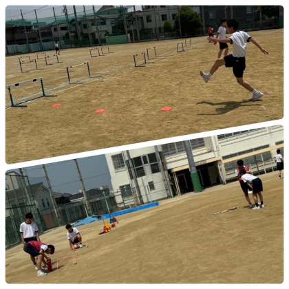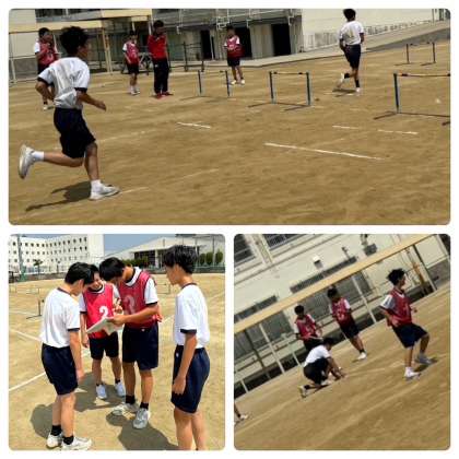 1限目と2限目、ハードル走の授業で、選手役とコーチ役に分かれ、互いに教え合う授業(アクティブラーニング)を行っていました。