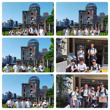 広島平和記念資料館、原爆ドーム、袋町小学校、本川小学校など、フィールドワークしながら、資料館での学習を行いました。