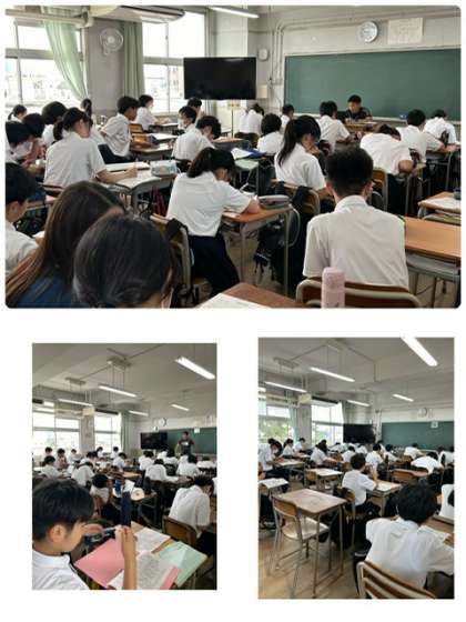 1年生は多少の疲れはあるものの、健康観察後、しおりのまとめ等おこなっております。