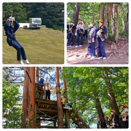 ジップラインは、体験前に怖がる人もいましたが、天気の良さも効果があり、とても気持ち良さそうでした。