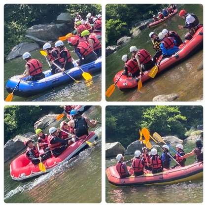 川辺から見てると暑さのことが心配でしたが、川の水が気持ち良く、自ら飛び込んで泳いでいる人もいました。