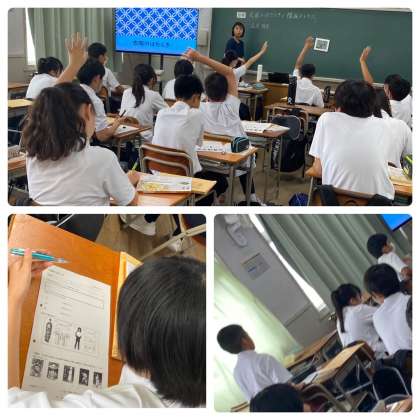 授業では、たくさんの答えが活発に出ていました。いろいろな答えを考え、理由を説明できる力をつけてください。