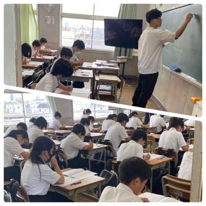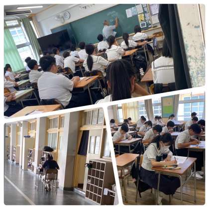 2学期スタートしていきなりですが、1年生と2年生は課題テスト、3年生は実力テストを行いました。いつも通り、集中したいい顔で受けていました。