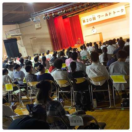 海外から大阪市立の小中学校に編入した生徒が自身の母語でスピーチをするワールドトークが本校で開催されました。