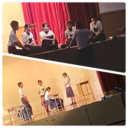 放課後、演劇放送部と吹奏楽部が舞台練習をしていました。どちらも完成に近づいているようでした。