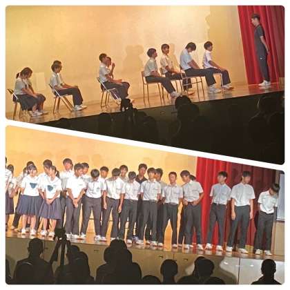 午前中のリハーサルでは、学年やクラスからの発表をチェックさせてもらいました。セリフが出ずに止まってしまいそうになったチームもありましたが、明日は頑張ってくれると期待しています。