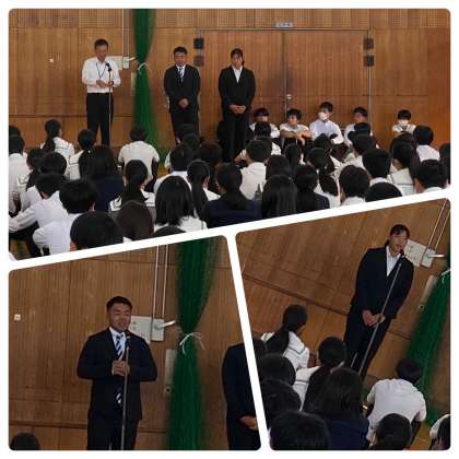 あいさつ、授業も緊張気味でしたが、皆さんの力で素敵な3週間となり、先生になりたい気持ちが高まることを願っています。知り合いの人もいると思いますが、親しくしていても礼儀をわきまえ、お互いに良い思い出となるようにしていきましょう。