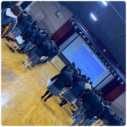 6限目、1年生は、講堂で今月末に行う予定の職業体験講座に向けて説明がありました。美容、測量、映像、介護、コンピュータ等、さまざまなジャンルの専門学校の先生に来ていただけるようです。