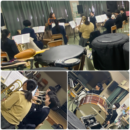 明日、吹奏楽部は住吉幼稚園の式典に参加、バレーボール部は試合があるため、テスト前でありながら練習していました。